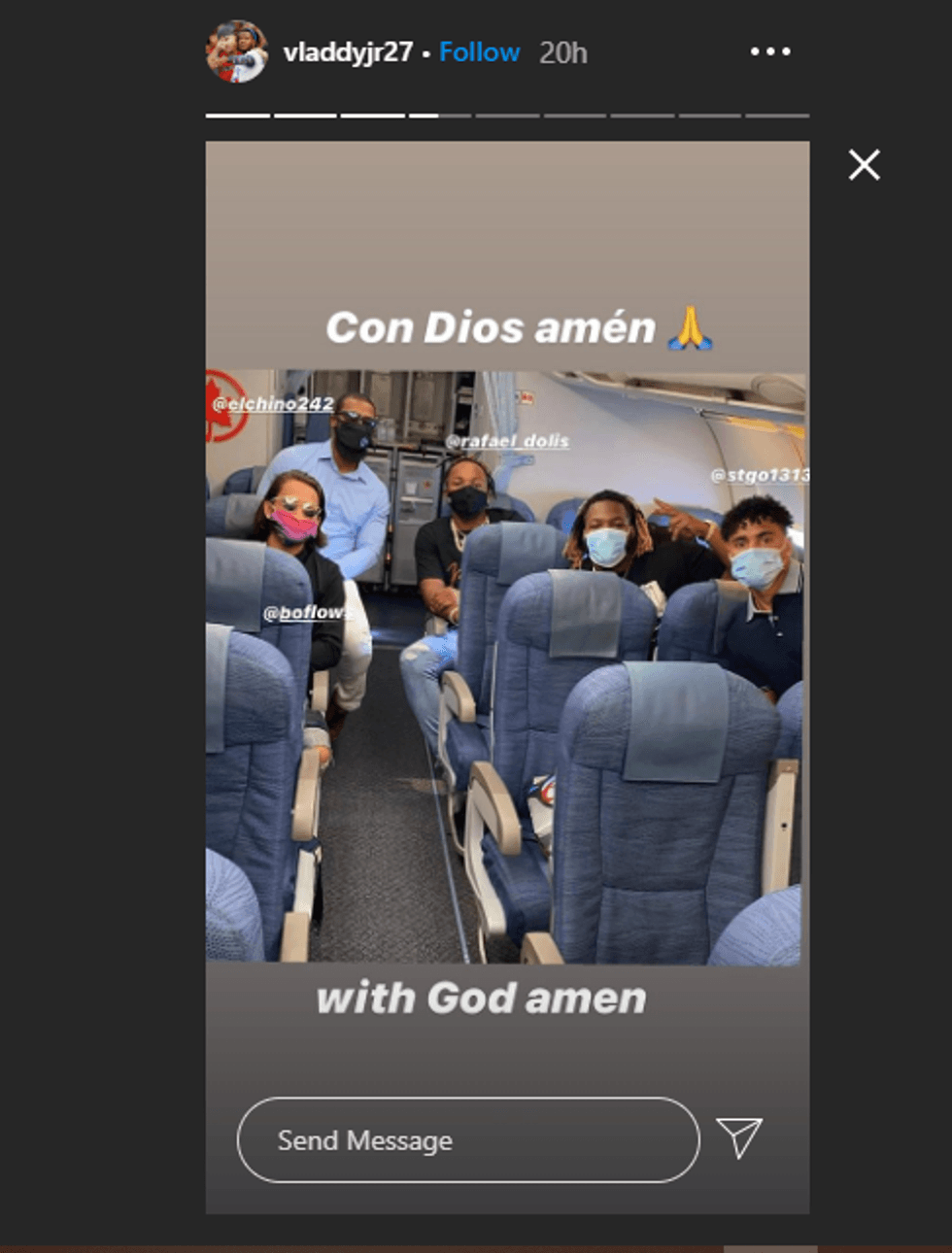 Vladimir Guerrero Jr. shared a photo of himself and some of the other Blue Jays on an Air Canada flight back home.