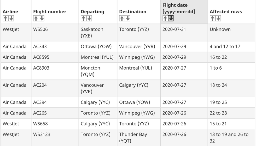 According to the Government of Canada's website, multiple domestic and international flights that travelled through Toronto were later reported to have been exposed to the disease.
