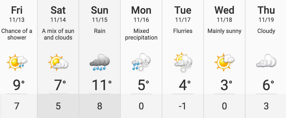 It may be getting cold out there, but at least we're well above Saskatoon's -22 C this week.