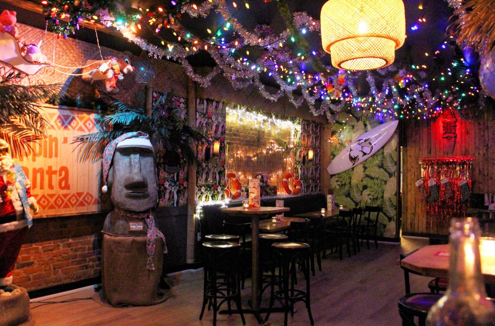 Sippin' Santa is a tropical themed bar that will take you on a Christmas vacation. The North Pole meets Hawaii decor gives the place a beachy but festive feel and the drinks have all the island vibes.