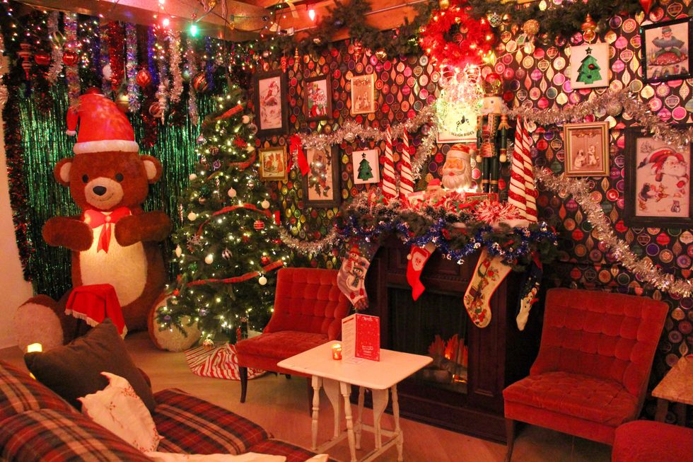 Both bars serve up some major nostalgia with the classic holiday tunes, kitschy, retro decor, and old-time Christmas movies playing on the television screen.