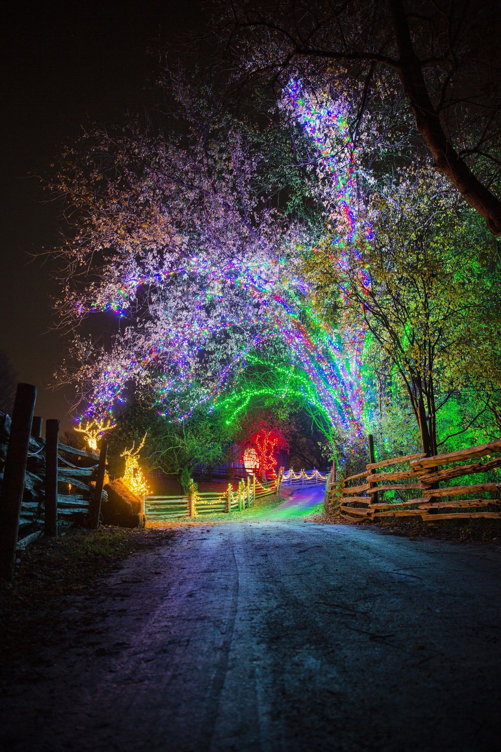 You can even snap a photo with Santa himself as you wind along the glowing road.