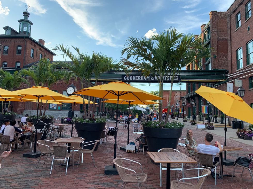 The Distillery District has transformed into an expansive outdoor seating area where you can enjoy your summer days vacation-style.