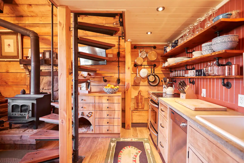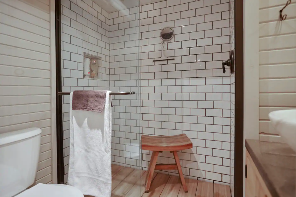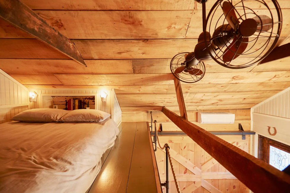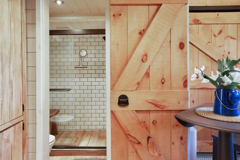 From the twisting staircase to the sliding barn doors and walk-in shower, the Airbnb has a cozy, homey feel and is the perfect place to unwind.