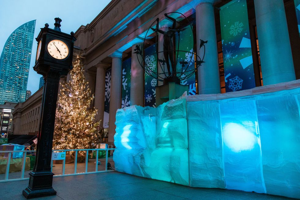 To spread the spirit of the holiday season, Union Holiday - Presented by TD will transport commuters and passersby to another world by experiencing new textures and landscapes: from larger-scale cliffs that emulate the edge of ice floes and icebergs, to an exquisite feature piece of a frozen waterfall.