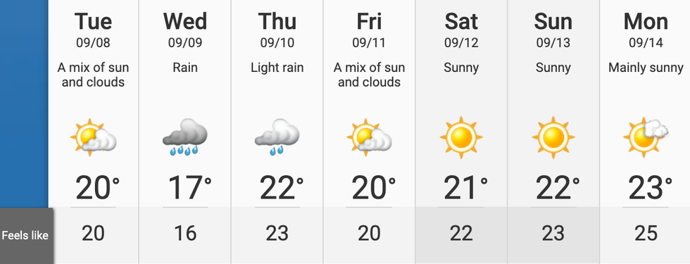 Here's a look at Toronto's seven-day outlook for September 8 to 14.