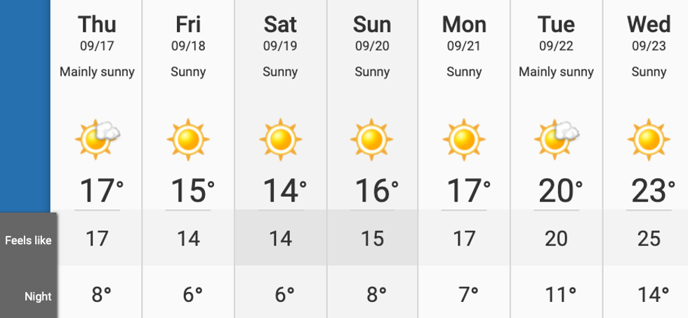 Both Friday and Saturday are set to be chilly, especially at night, according to The Weather Network.
