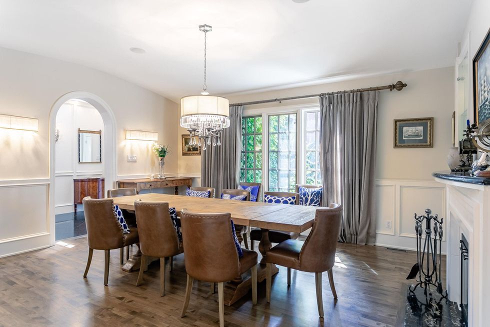 With large bay windows and marble-floored fireplaces, this is the ultimate dining room to host dinner parties in.
