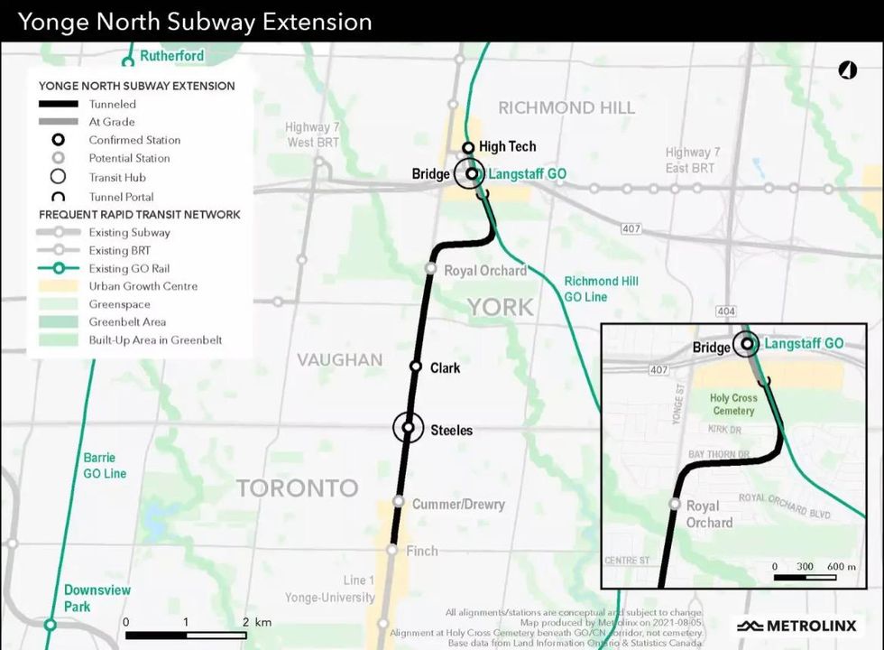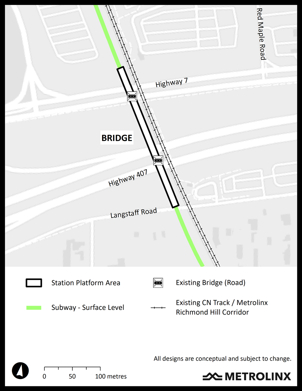 The third station will bridge over Highway 7 and Highway 407 corridors and will connect the Richmond Hill Centre with Langstaff Gateway urban growth centre which are separated by the highway infrastructure.