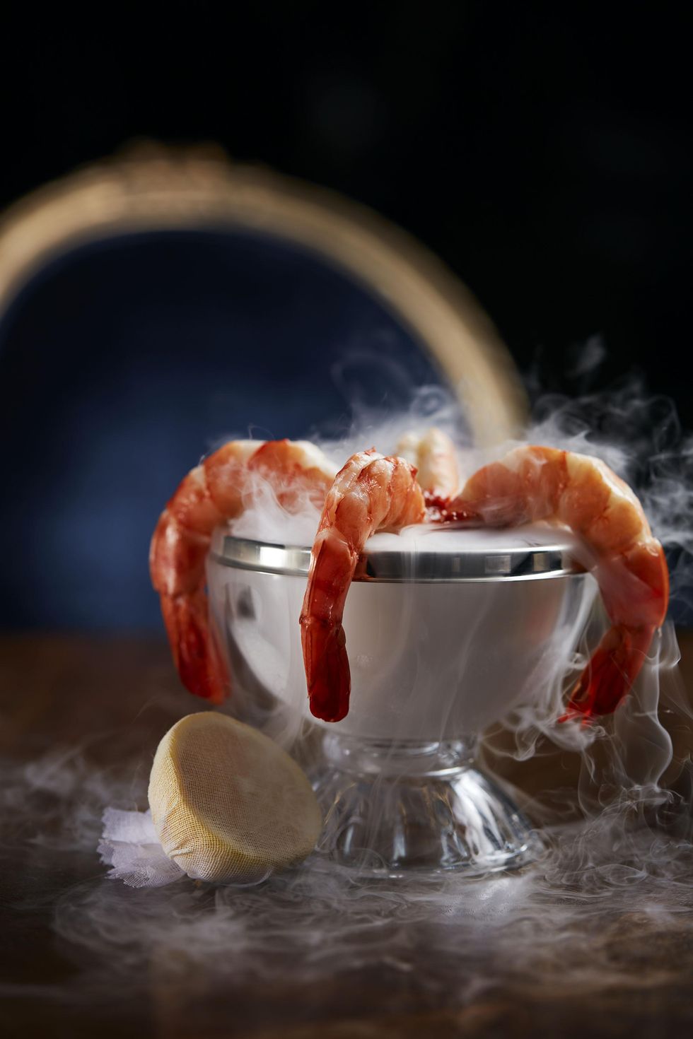 Shrimp in a steaming bowl.