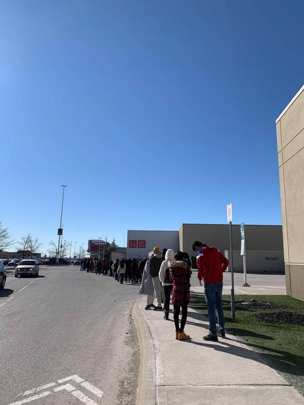 Videos and photos from the shopping mall on Sunday, March 7, show long lineups that wind their way around the building at more than one entrance.