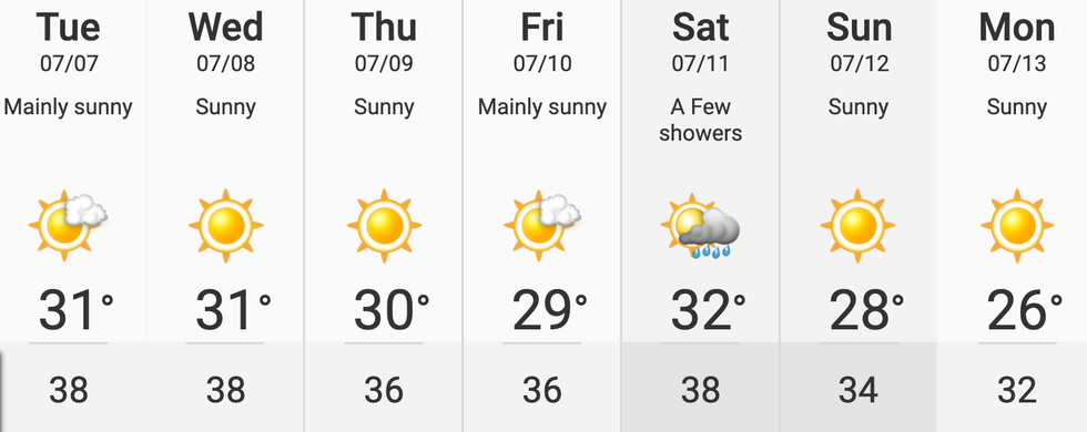 July 6 to July 12 will get the worst of it, with scorching sun feeling like the mid-thirties.