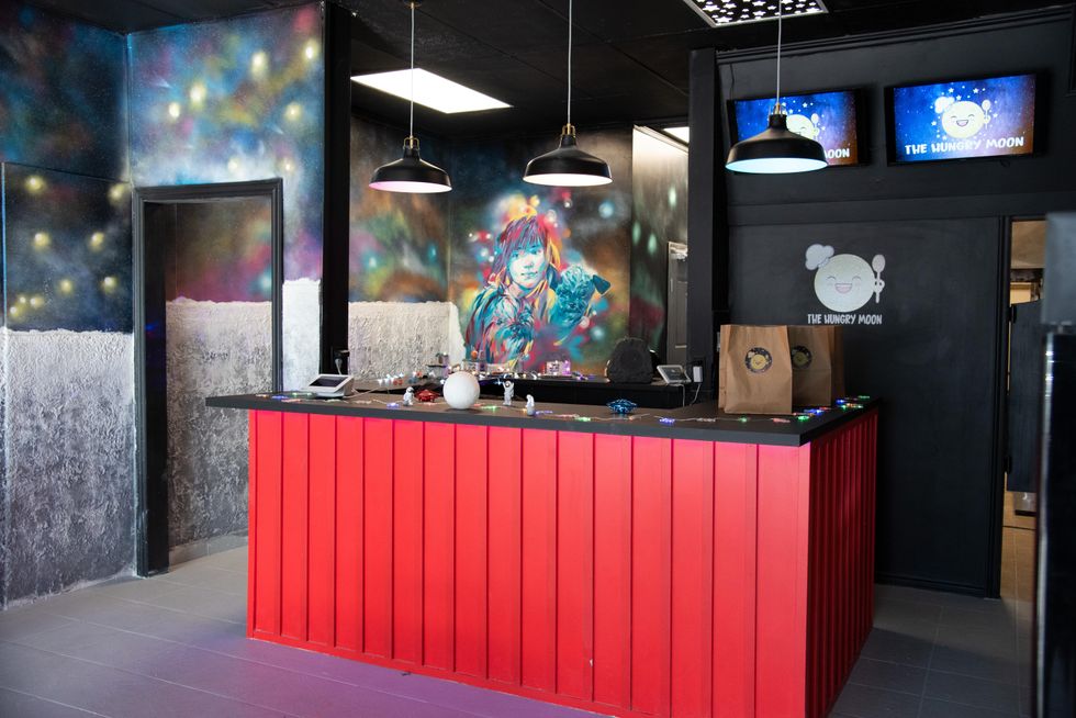 Now, you'll be able to visit a brick-and-motar location to enjoy some unique, Filipino Fusion dishes. The interior will make you feel like you've rocketed to another planet, from the moon crater walls to the glow-in-the-dark stars.