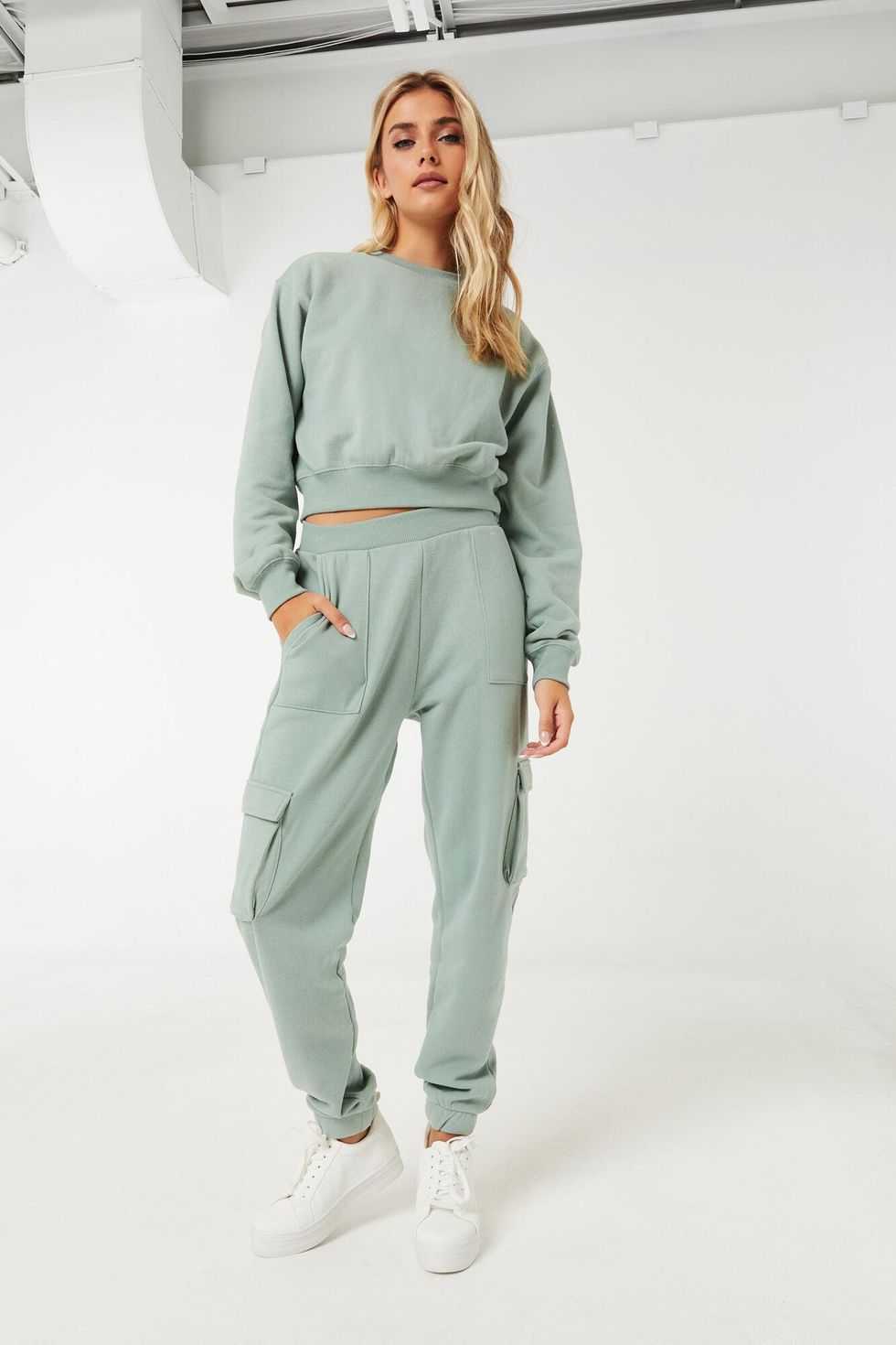 Cropped Crew Neck Sweatshirt & Slouchy Cargo Joggers