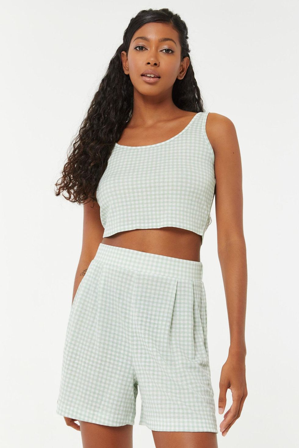 Details: This gingham-pattern is simple and trendy right now. Instead of the tank, you can get the matching top with ruffles if you like more coverage.