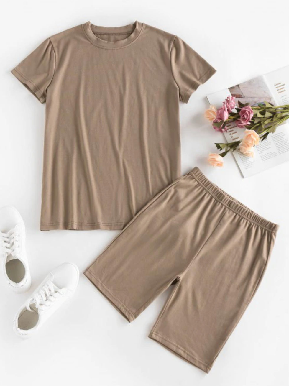 Ribbed Power Crew & Rolled Hem Cycle Shorts