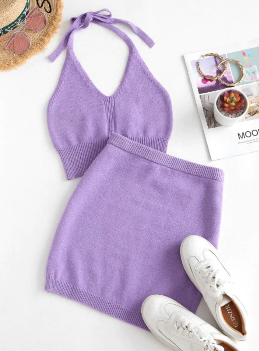 Details: This bright halter set is stretchy and soft and comes in four gorgeous colours like purple and green. Shoppers say they also pair the top with jeans which looks cute, too.