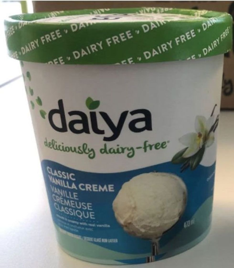 Daiya Classic Vanilla Creme Non-Dairy Frozen Dessert is being taken off store shelves in the two western provinces because it has milk in it that isn't declared on the label.