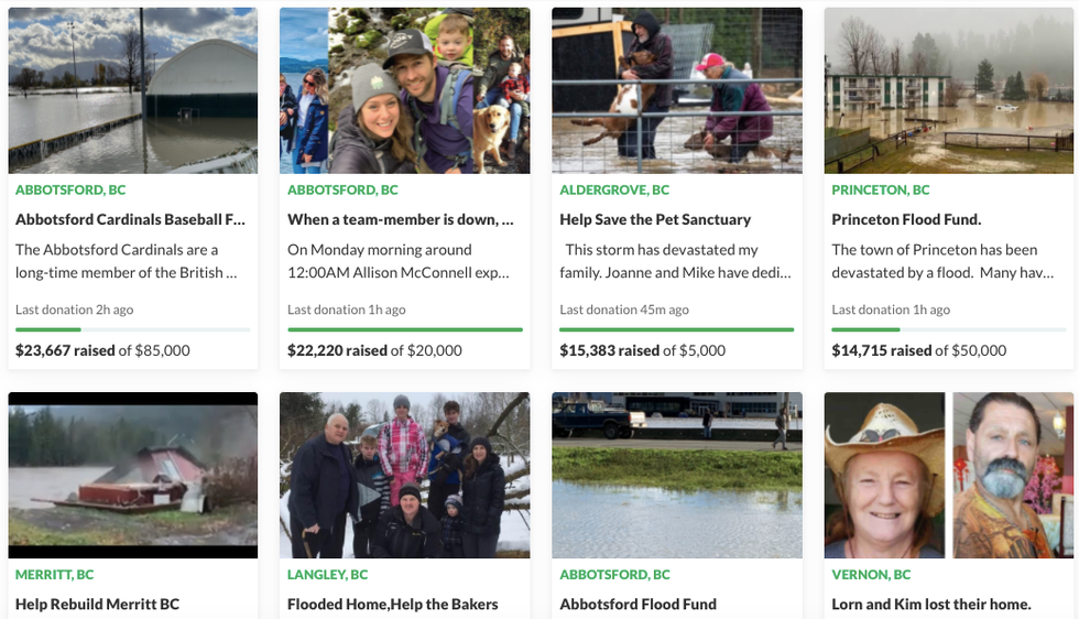 GoFundMe has created a page of verified fundraisers where people can leave donations for those affected by the floods in B.C.