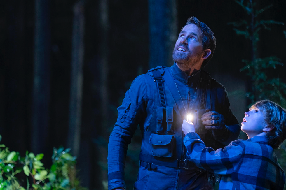 Ryan Reynolds and Walker Scobell acting in 'The Adam Project'.