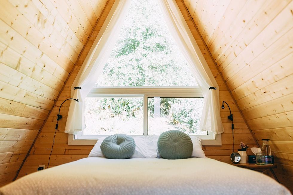 There are two options to choose from. The spacious Scandinavian-inspired cottages boast extra features like an indoor and outdoor shower and built-in reading nook or the adorable A-frame wooden cabins.