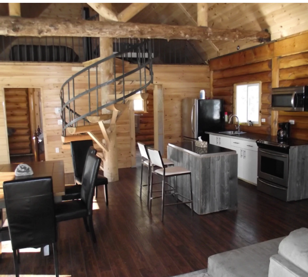 Pourquoi tu dois booker : En plus d'avoir un spa et un foyer intérieur pour te réchauffer, ce chalet en bois rond se situe près du Parc régional de Portneuf et tu peux y faire plusieurs activités.