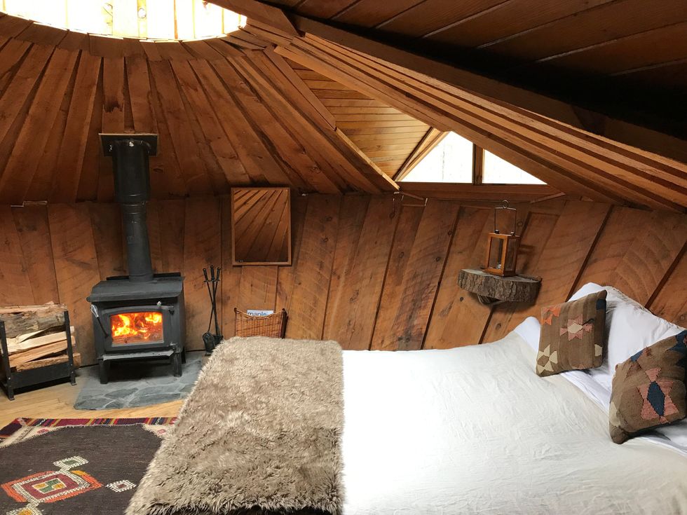 At night, you can gaze at a clear sky full of stars before you head inside, where you’ll find a warm fireplace and a comfy bed decked out with linen and bamboo sheets.